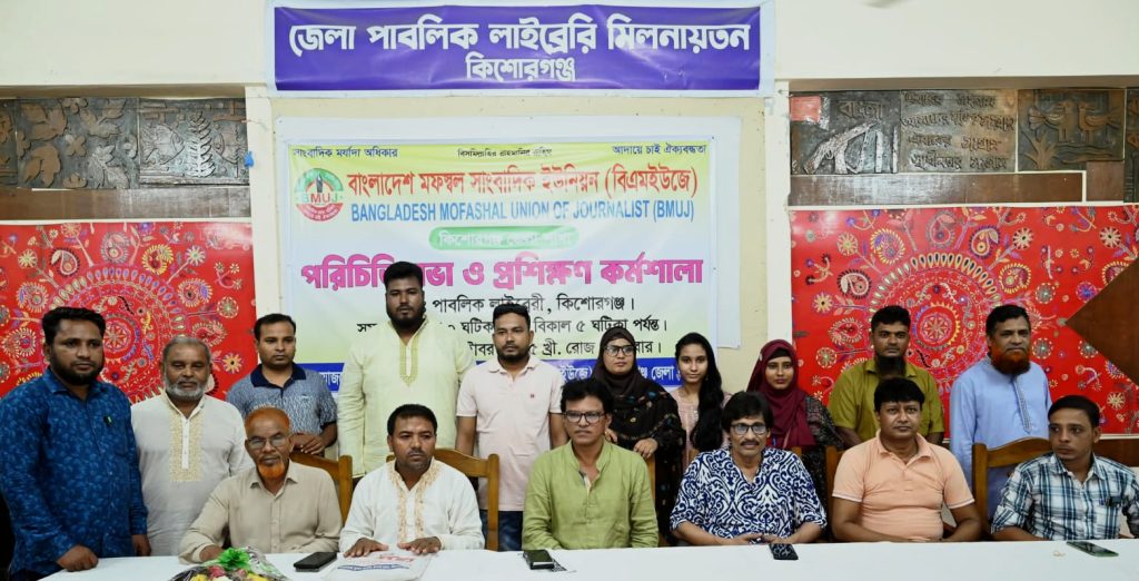 বাংলাদেশ মফস্বল সাংবাদিক ইউনিয়ন (বিএমইউজে) কিশোরগঞ্জ জেলা শাখা আয়োজিত পরিচিতি ও প্রশিক্ষণ কর্মশালা শনিবার (২৫ অক্টোবর) সকাল ১০ ঘটিকায় কিশোরগঞ্জ পাবলিক লাইব্রেরী হলে অনুষ্ঠিত হয়। অনুষ্ঠানের প্রশিক্ষণ কর্মশালায় ২৫ জন প্রশিক্ষণার্থী প্রশিক্ষণ গ্রহণ করেন, প্রথম অধিবেশনে সভাপতিত্ব করেন বিএমইউজে জেলা সভাপতি দৈনিক কালের সংবাদ সম্পাদক খায়রুল ইসলাম।