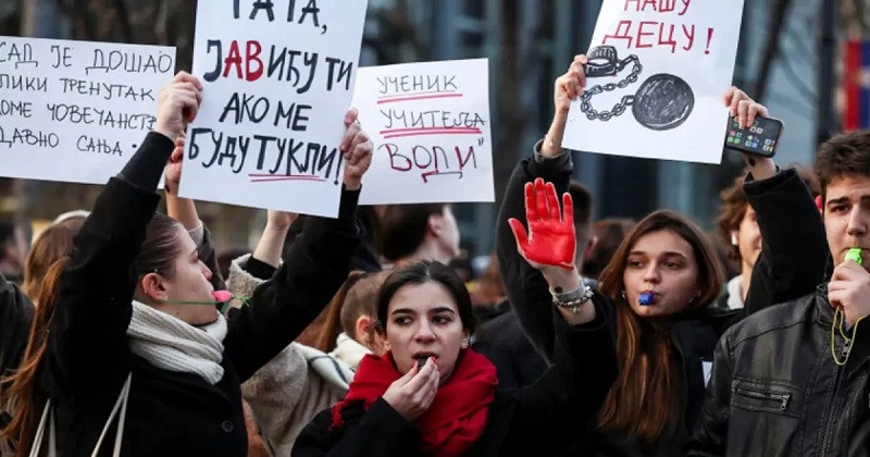 সার্বিয়ায় শিক্ষার্থীদের বিক্ষোভ, হামলার বিচার-দ্রুত নির্বাচন দাবি